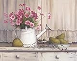 Title: Pink Flowers And Pears. Artist: T.C. Chiu. Image Size: 20.00in. x 16.00in. Paper Size: 20.00in. x 16.00in. MUSEUM WRAP CANVAS Print With Added Heavy BRUSHSTROKESThe Canvas Transfer Process